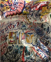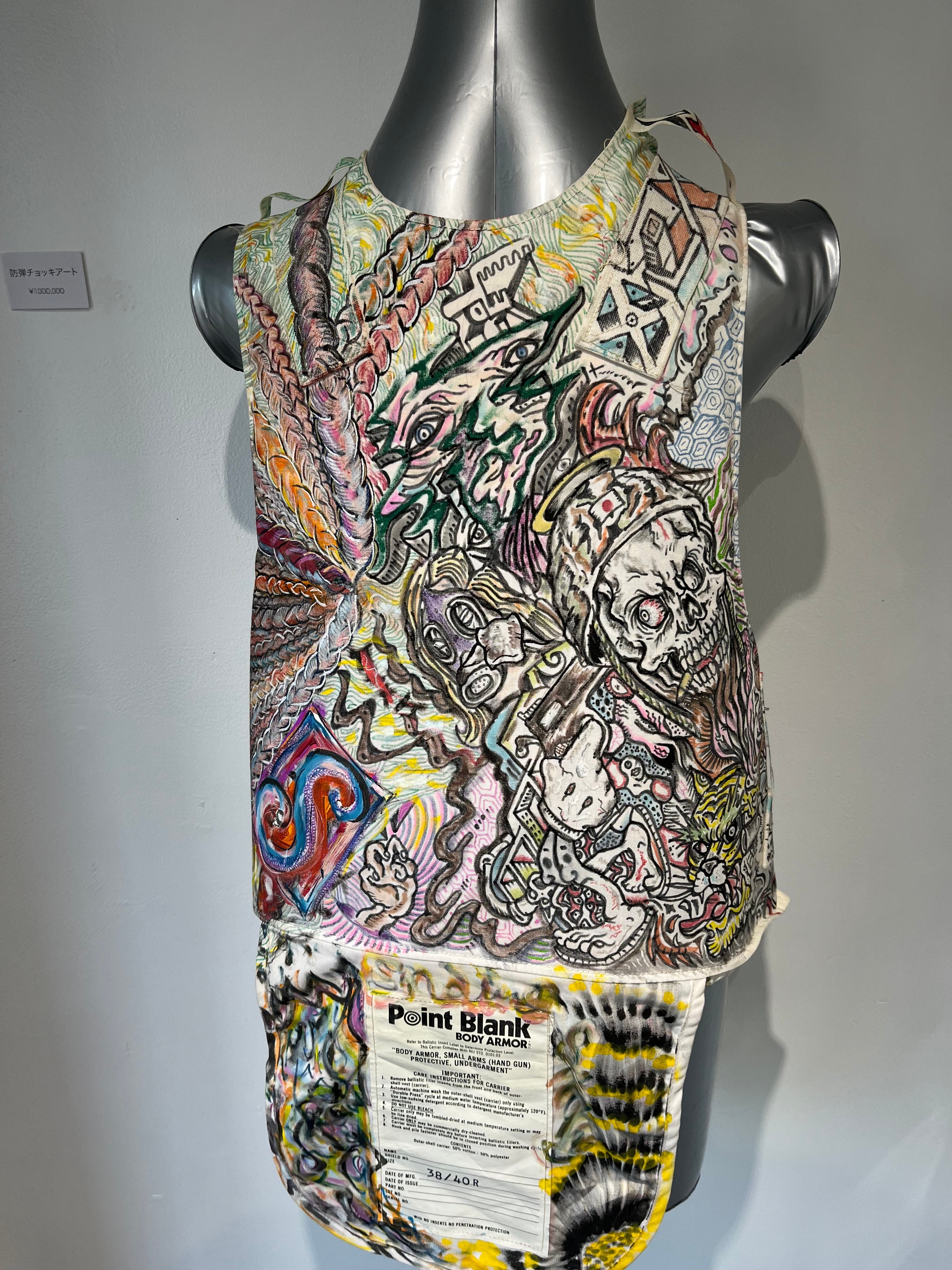 防弾チョッキの各部位に絵を施してあります。