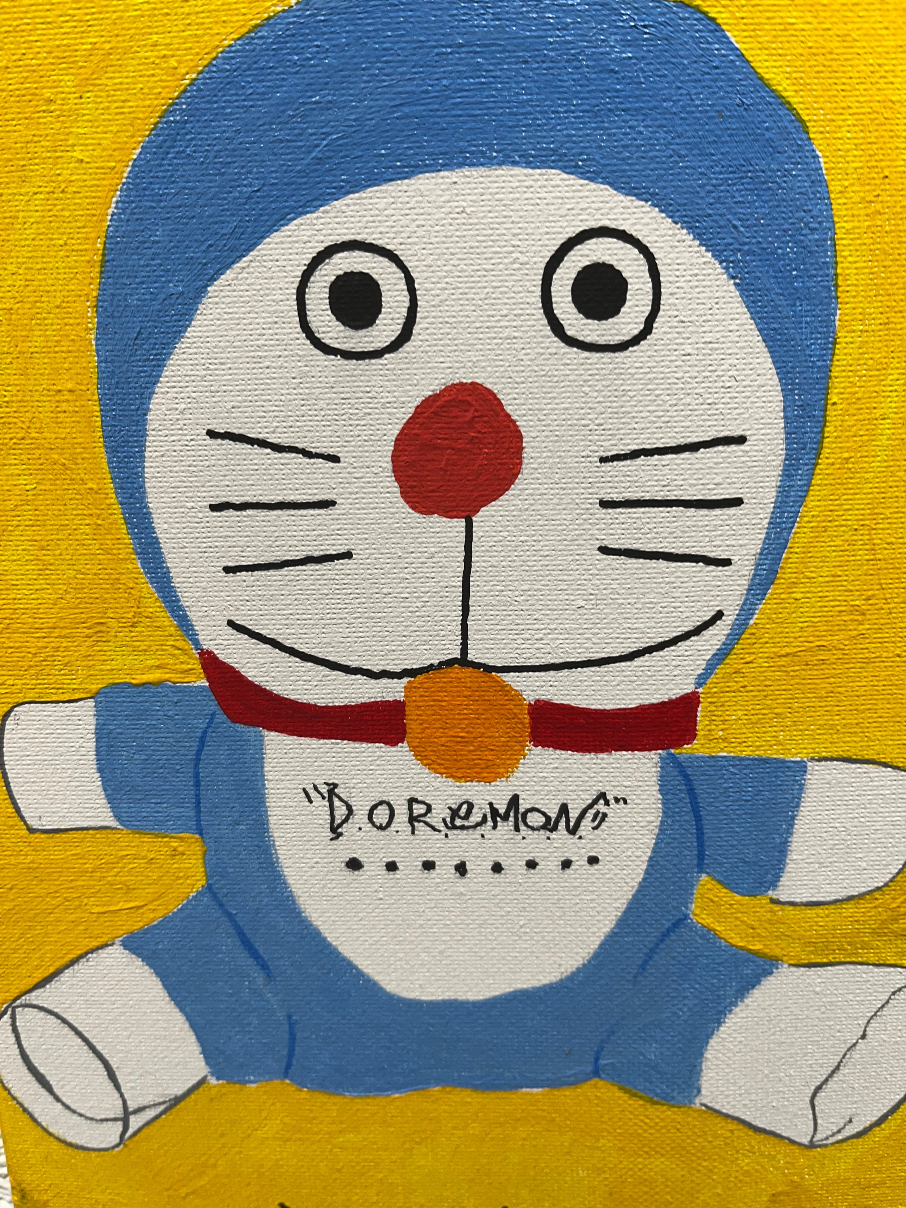 ミニキャンバスにインドの路上で売られていると噂のパチドラえもんを描いてみました。