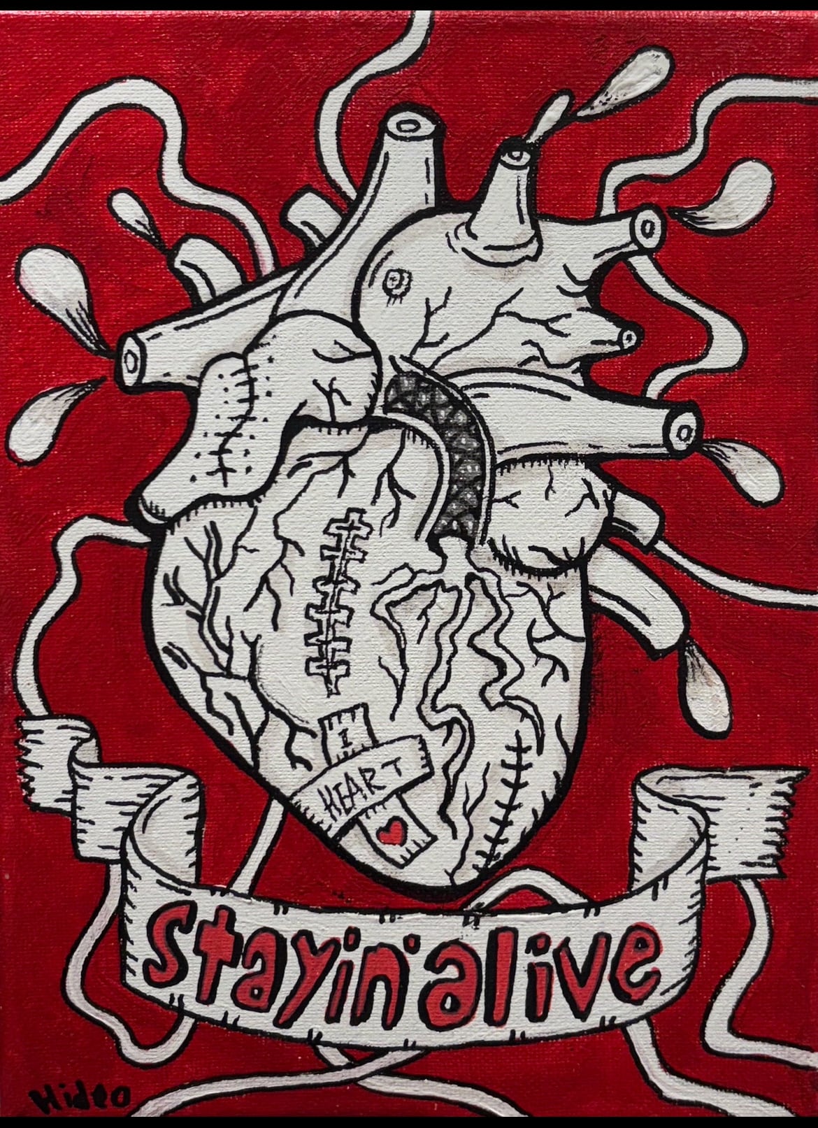 心筋梗塞のオペでステントを挿入し生き延びた事象を絵にした記念作品になります。
