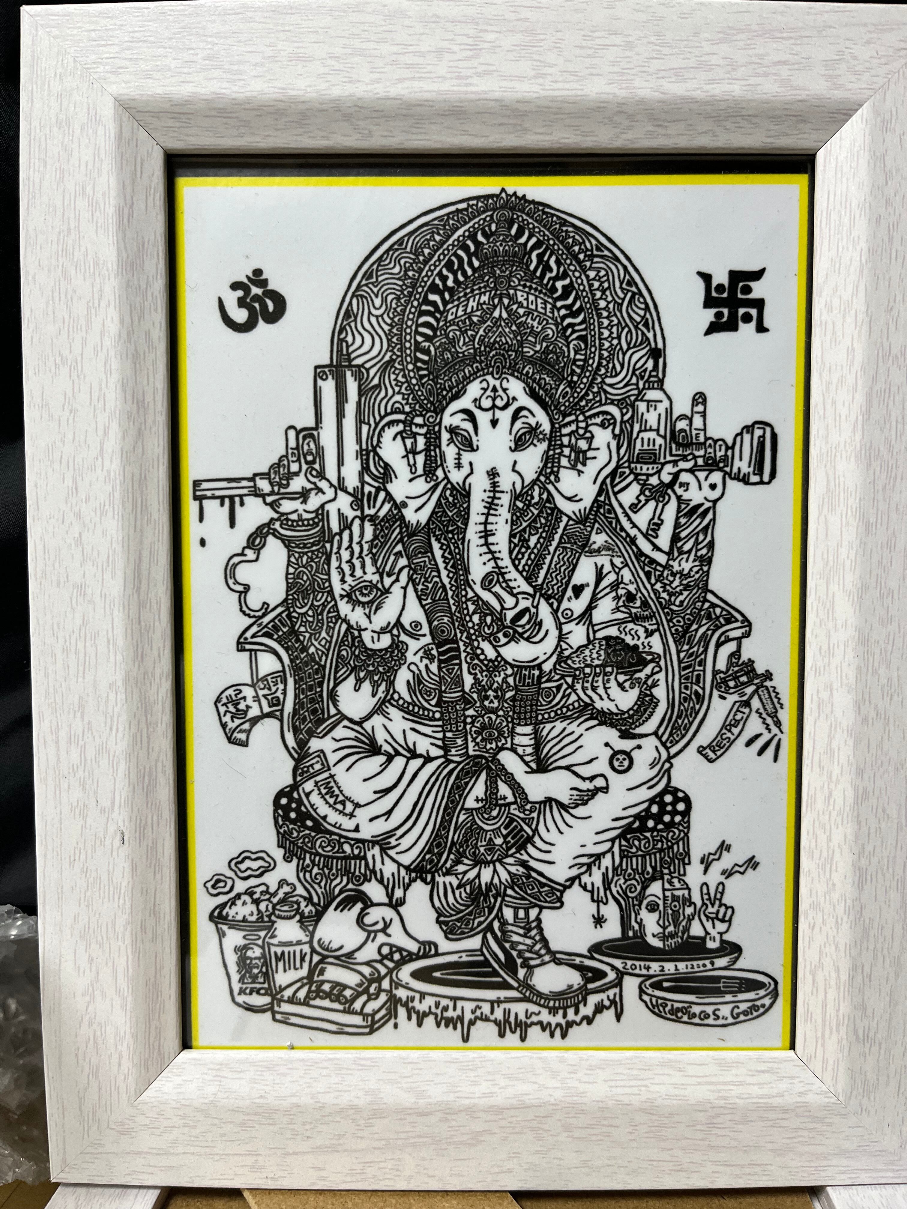 インドの神様ガネーシャのイラストをポスター化したものになります。立て掛け、ピンやひっつき虫などで壁に貼る2wayな使い途があります。